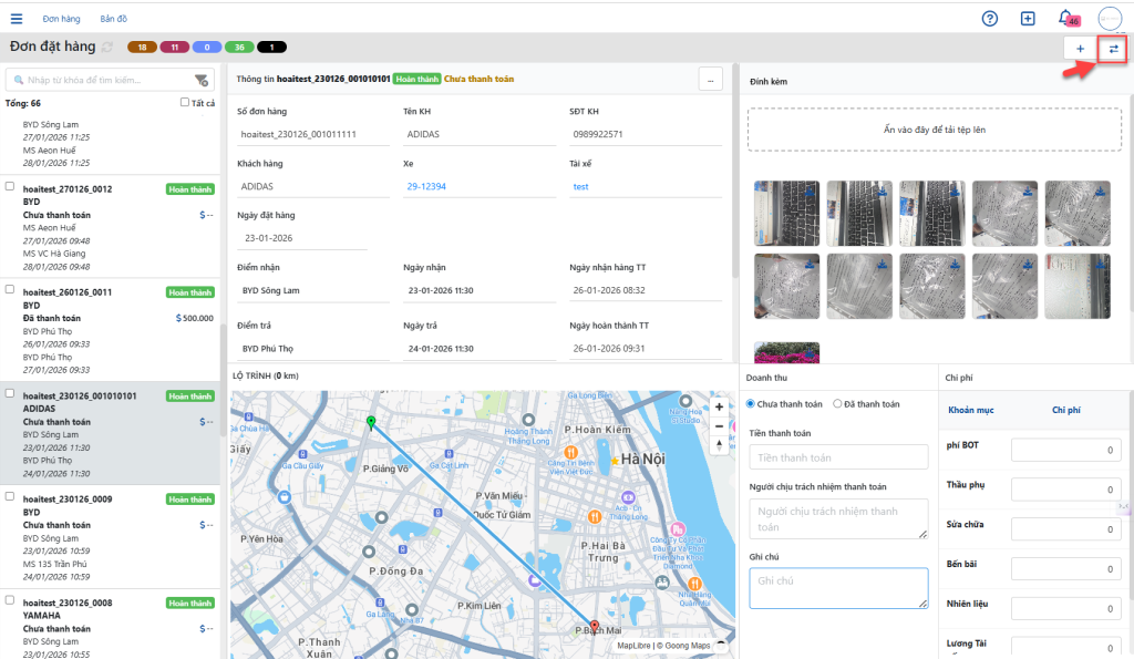 Trong thực tế vận tải, các tình huống phát sinh như kẹt xe, đổi điểm trả, khách yêu cầu gấp hoặc cần gom chuyến luôn xảy ra. Khi có bản đồ tích hợp ngay trong màn hình đơn hàng, điều phối viên có thể phản ứng nhanh hơn, ra quyết định chính xác hơn và tối ưu nguồn lực tốt hơn.